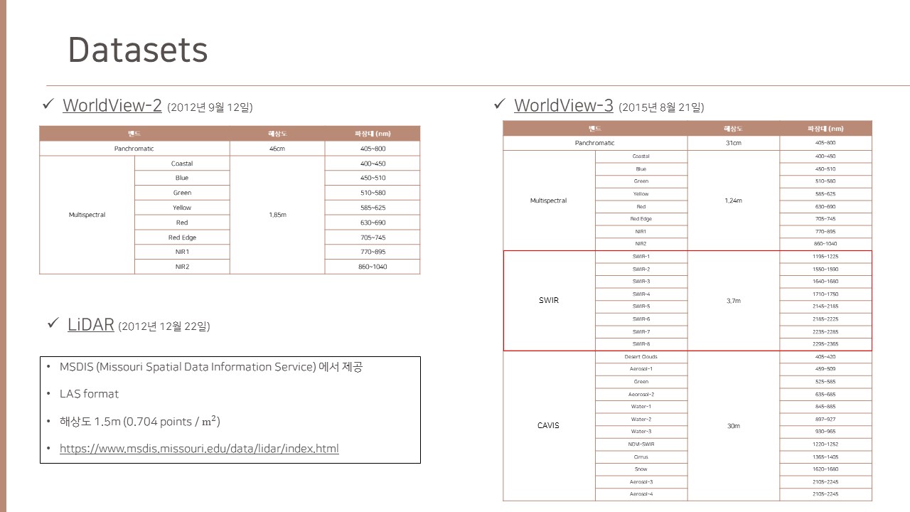 [논문리뷰] Urban Tree Species Classification Using a WorldView-2/3 and LiDAR Data Fusion Approach and Deep Learning 본문